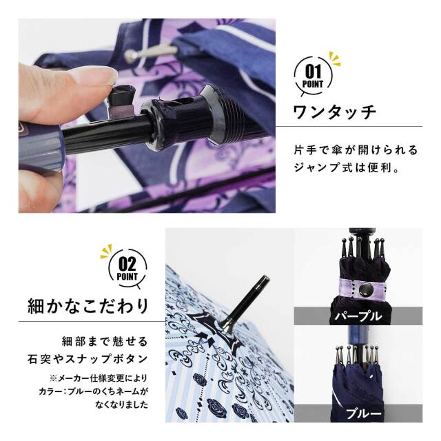 片手ワンタッチで傘が開きたい時に簡単に開けるジャンプ傘は、車やバスの乗降時や急な雨の時にとても便利です。