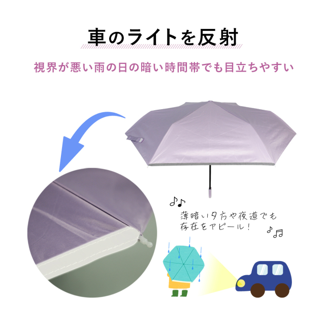 暗い夜道も車のライトで反射するテープ付きで安心。